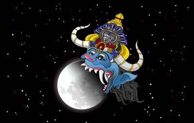 la serpiente del eclipse Rahu se tragará parcialmente la luz de la luna. La sombra oscura de la serpiente tiene el poder de despertar miedos subconscientes, romper ilusiones y enseñar importantes lecciones kármicas.