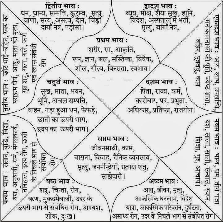Hemos explicado los términos y las clasificaciones de las casas ahora procederemos a detallar los indicadores de las casa en la carta natal en relación a las cosas terrestre, materiales de la vida humana. La posiciones relativas y los asuntos conectados con cada casa junto con lo que significa se explica a continuación ya que es de suma importancia para el estudio correcto de una carta astral.
